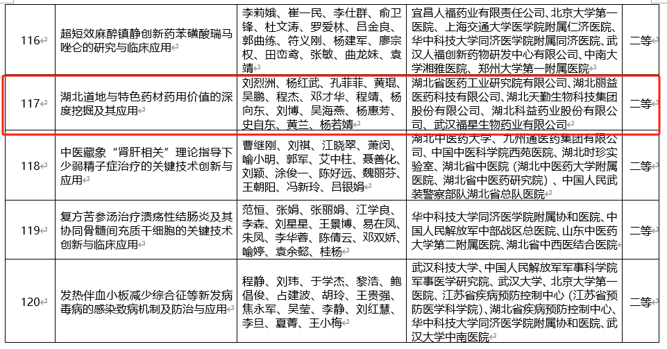 近日,2025年度湖北省科學(xué)技術(shù)進步獎名單公示,由天勤生物聯(lián)合湖北省醫(yī)藥工業(yè)研究院有限公司、湖北麗益醫(yī)藥科技有限公司、湖北科益藥業(yè)股份有限公司、武漢福星生物藥業(yè)有限公司共同完成的“湖北道地與特色藥材藥用價值的深度挖掘及其應(yīng)用”項目,榮獲二等獎。這一成果標志著湖北省在道地藥材資源開發(fā)利用與中醫(yī)藥現(xiàn)代化研究方面取得重要進展。